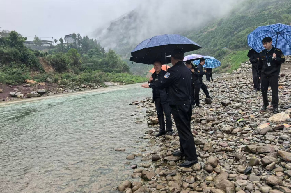 水潦彝族鄉(xiāng)政府工作人員和貴州團結(jié)鄉(xiāng)的工作人員聯(lián)合開展巡河工作(敘永縣水潦彝族鄉(xiāng)政府供圖)