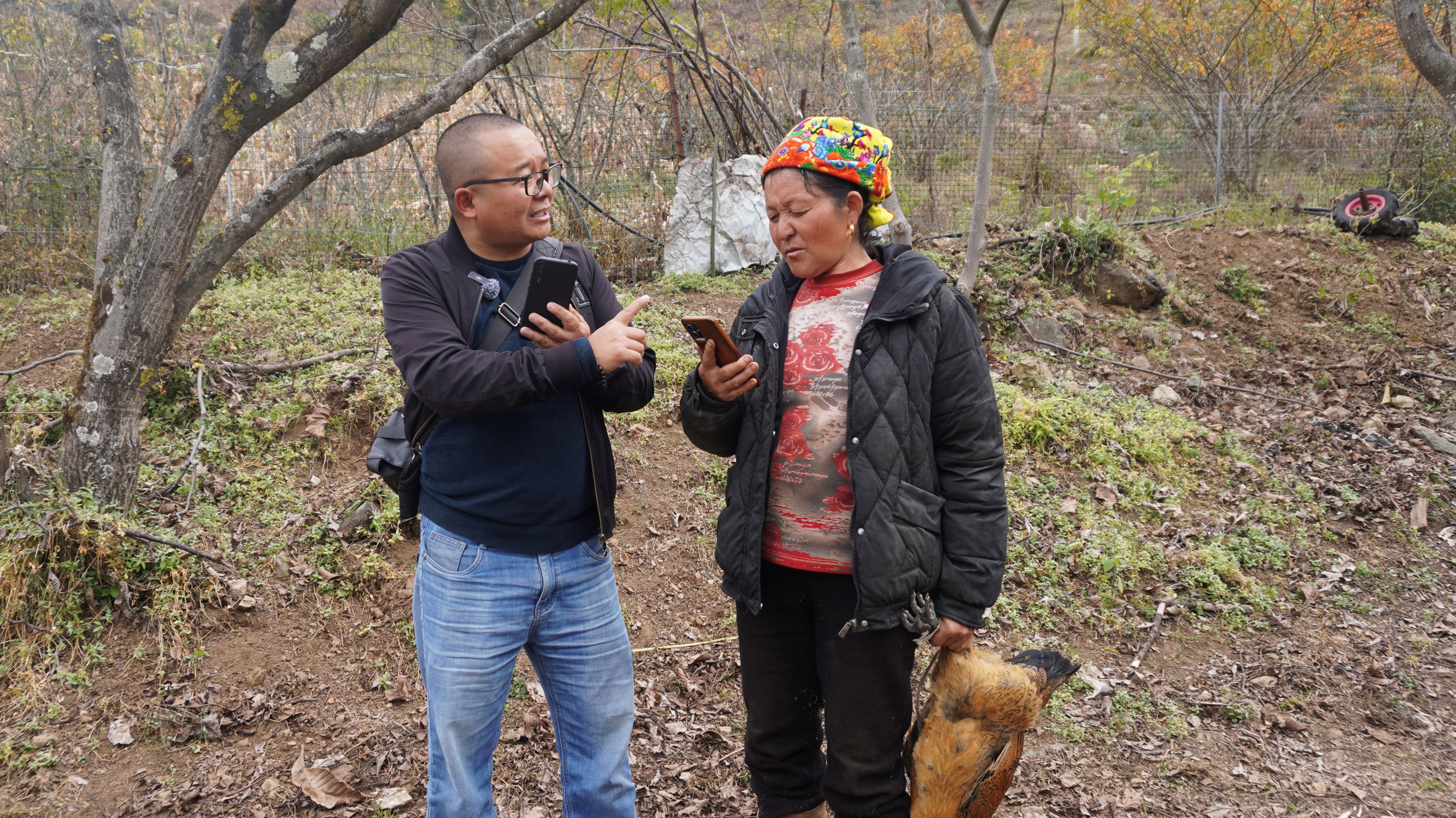 在松林坡地,蔣永康和農(nóng)戶配合,慢慢將雞引導(dǎo)到院壩內(nèi),看準(zhǔn)時(shí)機(jī),熟練地握住雞翅根部提起。他仔細(xì)檢查雞爪——角質(zhì)層厚實(shí);翻開(kāi)胸腹羽毛——皮膚呈淡黃色;掂量重量。