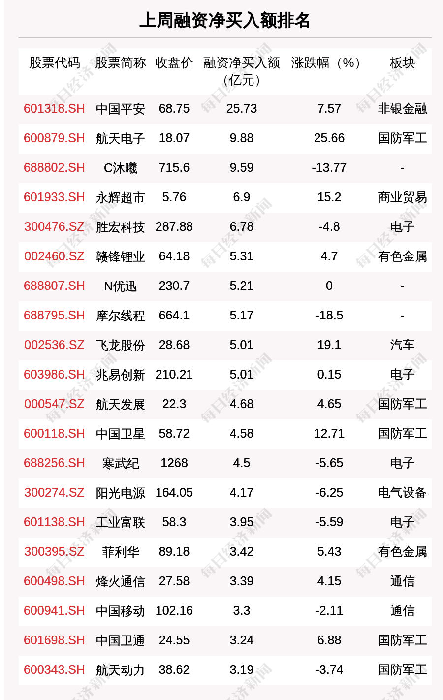 上周兩市共有1507只個(gè)股有融資資金凈買入,共有1只個(gè)股凈買入金額超10億元,其中中國(guó)平安、航天電子、C沐曦排名前三,買入金額分別為25.73億元、9.88億元、9.59億元。