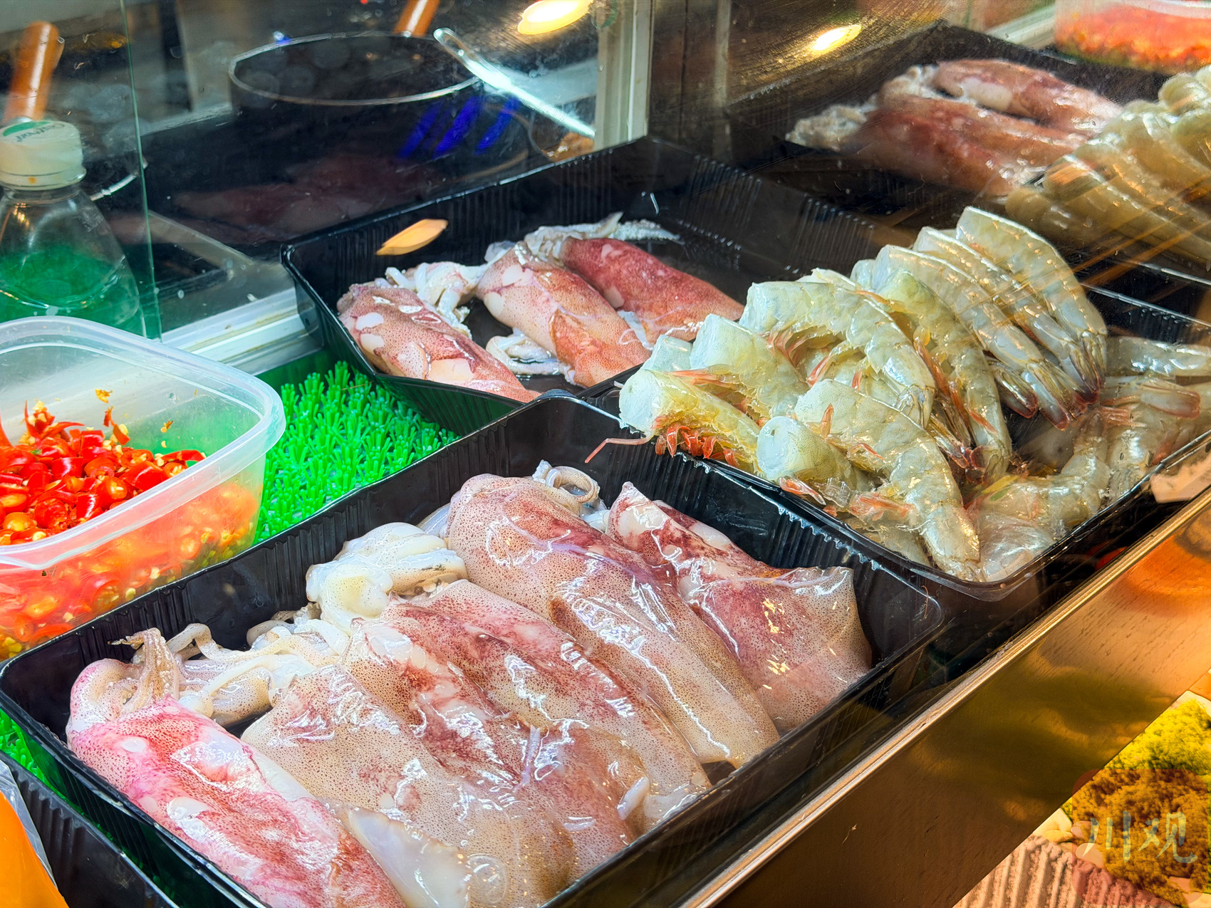 “蝦小宛”蝦汁面店內明廚亮灶,向客人展示其使用的新鮮食材。