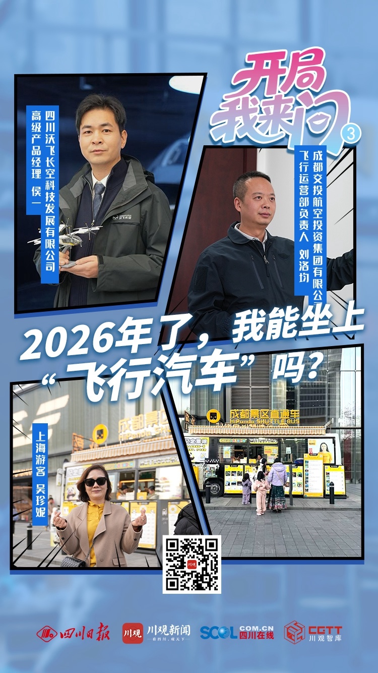這是我第一次來(lái)四川旅游,除了逛逛成都市區(qū),還想游覽周邊的九寨溝、樂(lè)山大佛、三星堆等景區(qū),但坐車去最近的三星堆要一個(gè)多小時(shí),去九寨溝更是要?jiǎng)榆囖D(zhuǎn)大巴。聽說(shuō)四川在搞“飛行汽車”,要是能乘“飛行汽車”直達(dá),該多快,體驗(yàn)該多好!我很關(guān)心下次再來(lái)四川,能圓這個(gè)“飛天夢(mèng)”嗎?