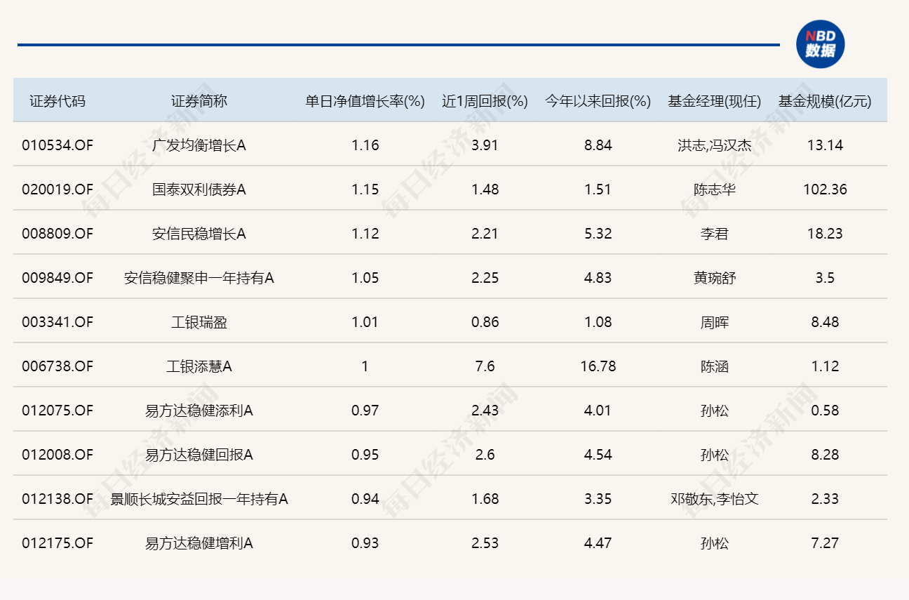 3.單日債基漲跌幅榜