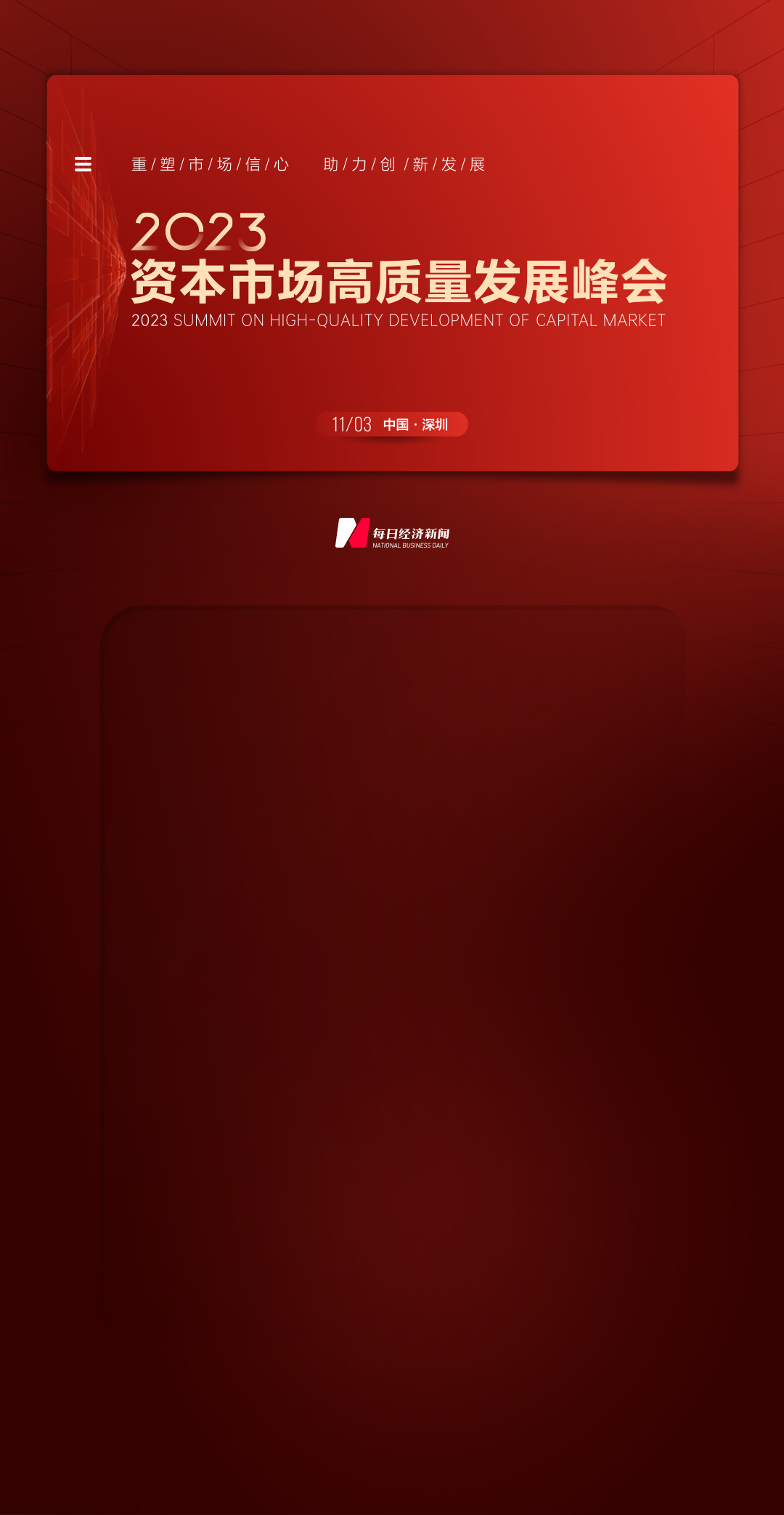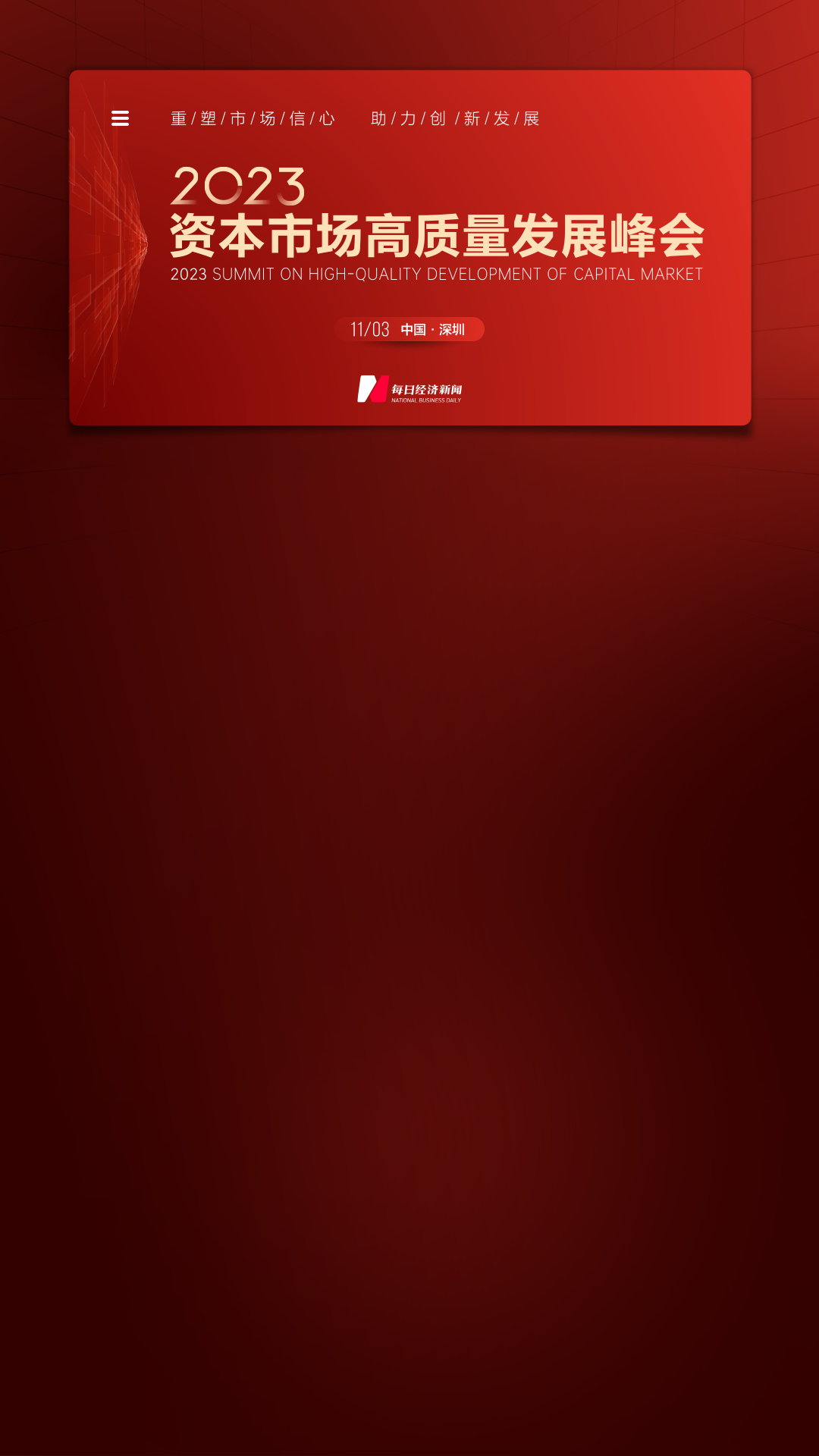 鑒于此,本屆資本市場(chǎng)高質(zhì)量發(fā)展峰會(huì)將圍繞"重塑市場(chǎng)信心 助力創(chuàng)新發(fā)展",希望聽到您對(duì)市場(chǎng)未來發(fā)展的真知灼見!