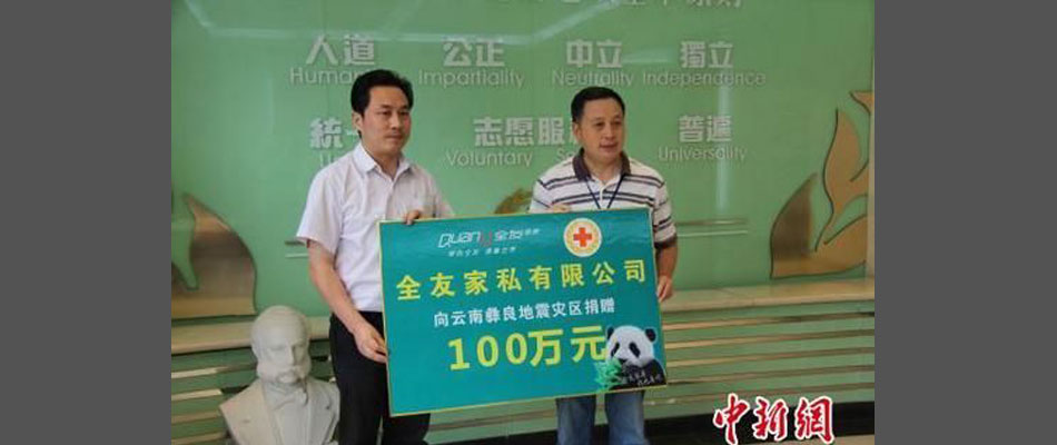 四川全友家私:愛(ài)心企業(yè)通過(guò)四川省紅十字會(huì)向云南彝良地震災(zāi)區(qū)捐款100萬(wàn)元,這是云南地震后,省紅十字會(huì)接收到的第一筆企業(yè)定向捐款 。【詳細(xì)】